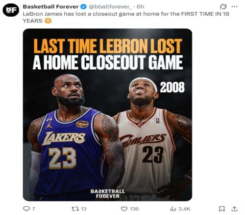 这场比赛后勒布朗季后赛主场晋级赛点16连胜的纪录被终结,自2008年后首次在主场手握晋级赛点失利,也就是18年的纪录被终结了。