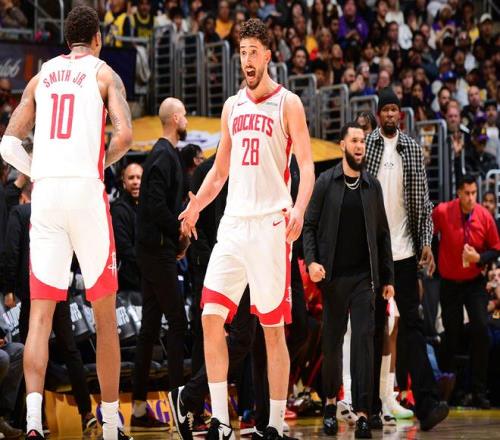 比赛刚开始,斯玛特的三分命中,帮助湖人队拔得头筹。而随着艾顿连续拼抢前场篮板得分,湖人很快取得了领先。而里夫斯上场后,效果也是尤为明显。三分犯规、连续助攻、超远三分,很快帮助湖人确立了两位数的领先优势。看起来,火箭队要在本场比赛结束本赛季了。但年轻人最突出的优点,就是年轻,体力充沛。很快火箭队迎来回暖,阿门的攻防转换、申京和伊森的突破,在首节结束的时候,帮助球队将分差缩小到7分。次节一上来,火箭队迎来了爆发。而一切的开始,就是从湖人旧将芬尼·史密斯投进个人系列赛第一记三分开始。