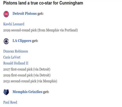活塞得到:小卡+2029年开拓者二轮签(来自灰熊)